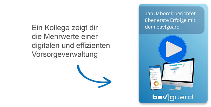 bav|guard ist die digitale Komplettlösung für die arbeitsrechtlich sichere, transparente und effiziente Verwaltung der betrieblichen Altersvorsorge – entwickelt für Arbeitgeber, unabhängig von Versicherern, mit voller Datenhoheit und echten Mehrwerten für HR und Vertrieb.